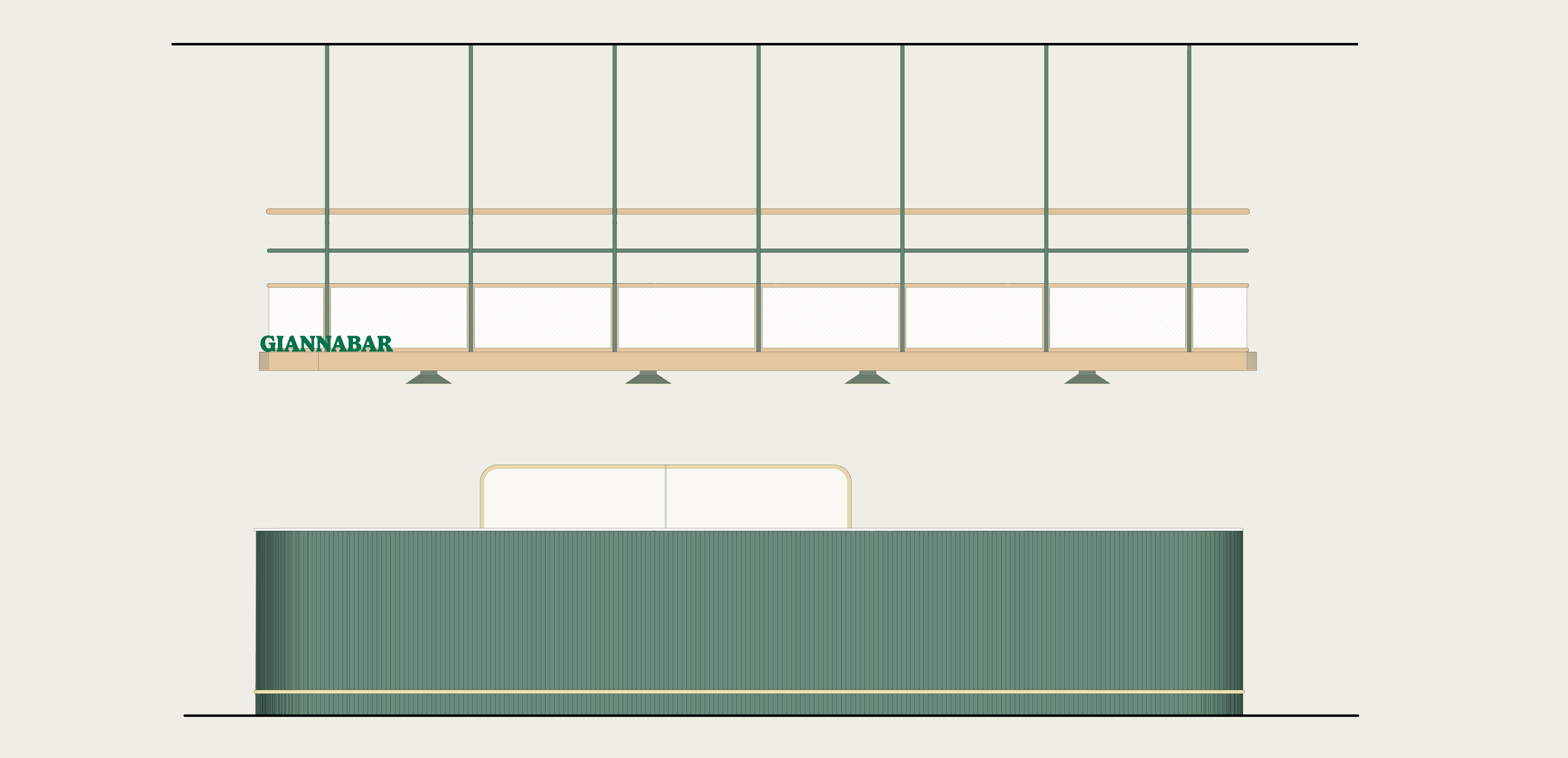 Pensato come fulcro visivo e operativo, il bancone supera la semplice funzione di servizio per diventare un vero e proprio catalizzatore relazionale: invita all’incontro, accompagna i flussi e costruisce una connessione spontanea tra chi serve e chi viene servito.