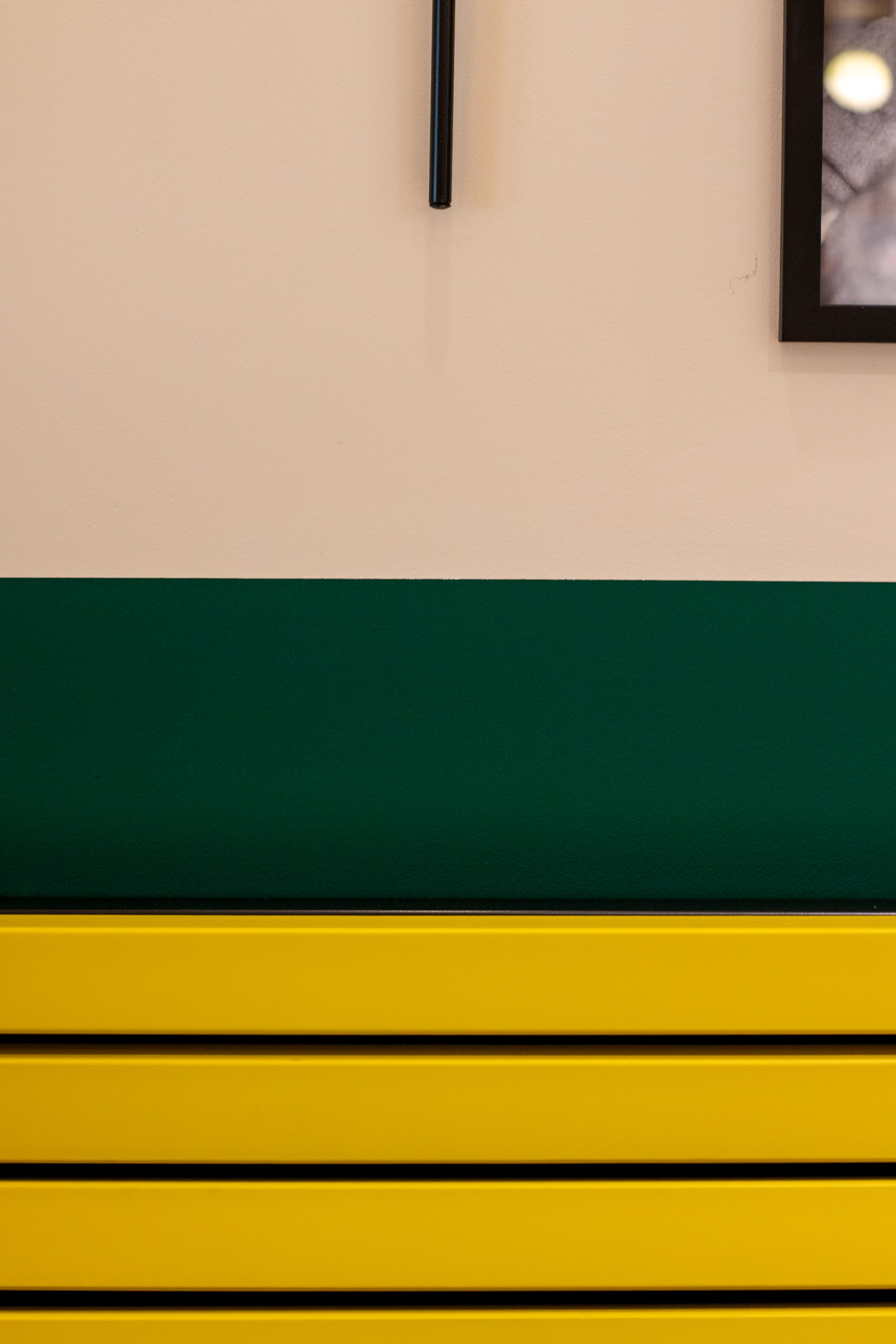 Il cuore dell'allestimento è il bancone, elemento centrale e iconico attorno al quale ruota l’intera esperienza del locale.